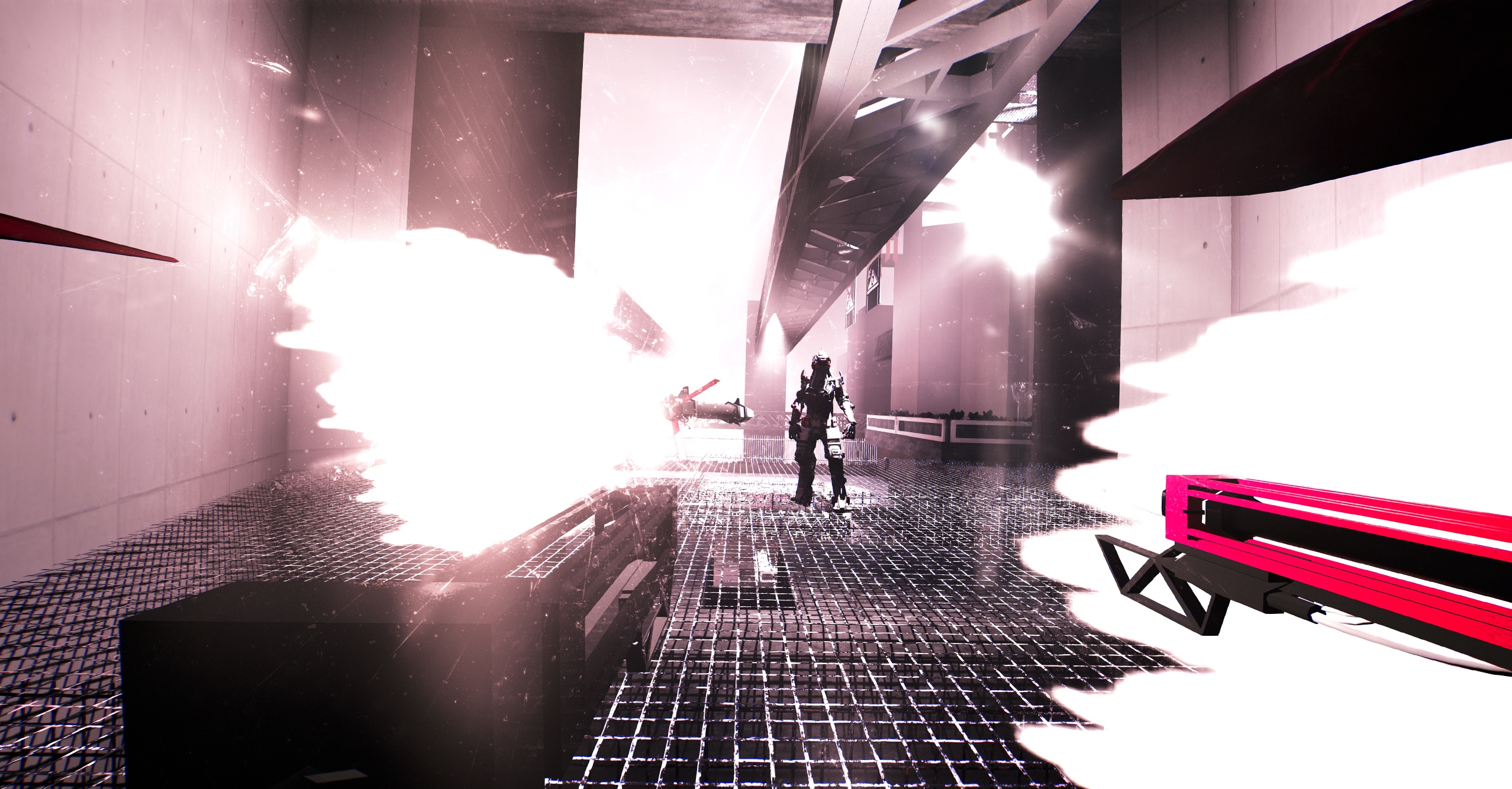 An alien movement shooter. Play as an alien test subject with 4 arms, breaking out of a dystopian containment facility. Unlock new weapons and movement abilities while completing battle objectives and traversing a concrete jungle.